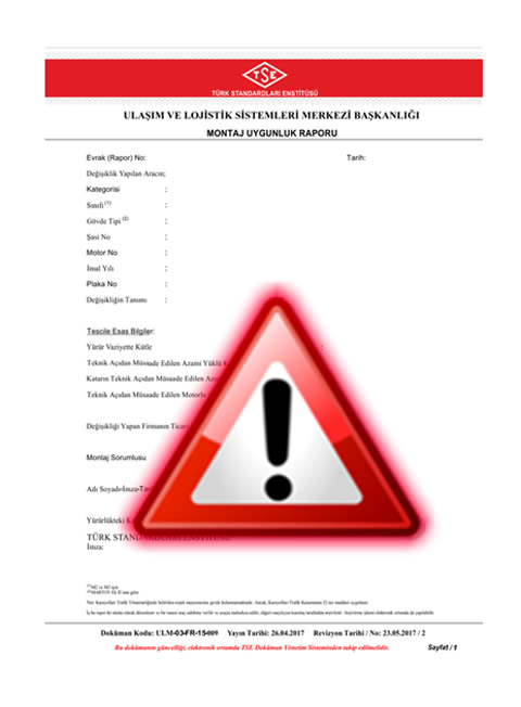 - İkinci deÄŸiÅŸiklik; araç montaj uygunluk raporu (bkz. 3. Adım) TSE tarafından yetkilendirilmiÅŸ firmalar tarafından hazırlanmaktadır.